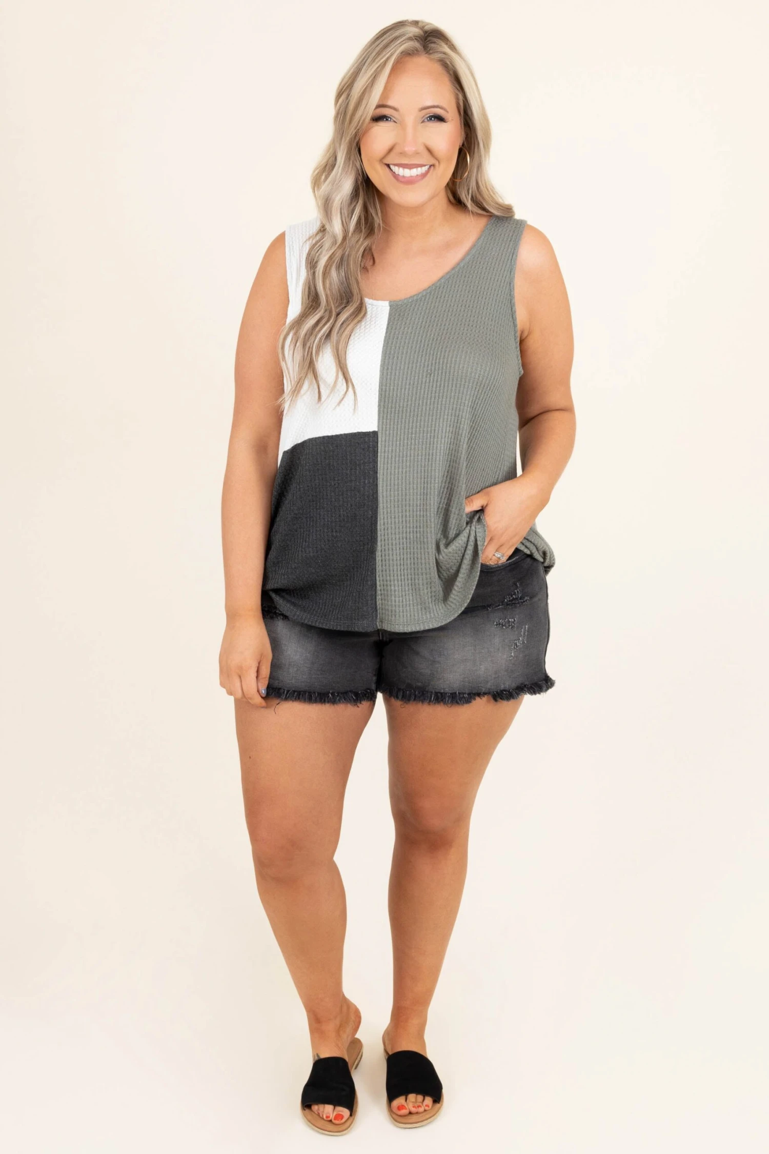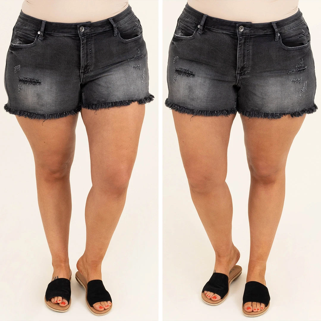 Elevate your style with these shorts this season! These have a gray wash color with a light distressed look and frayed hems that are so trendy! Style these with any top for a perfect look every time!