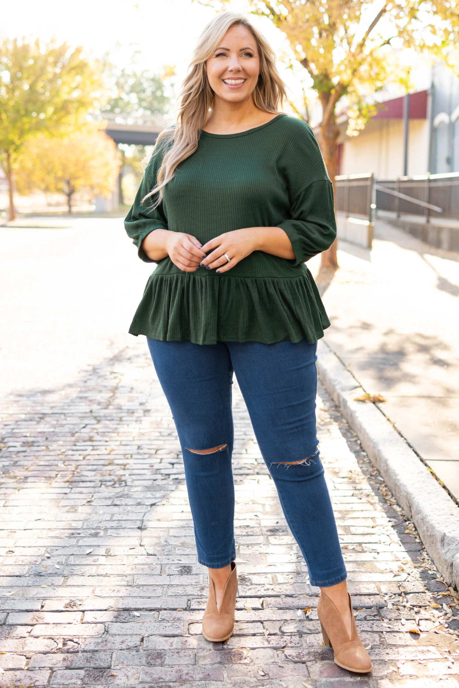 This top is gonna be the newest trend after everyone sees you wearing it! It has a wonderful olive color and a cute babydoll style. It’s perfect for a day at the office or a fun dinner with friends! Style it with jeggings and booties for a trendy look!