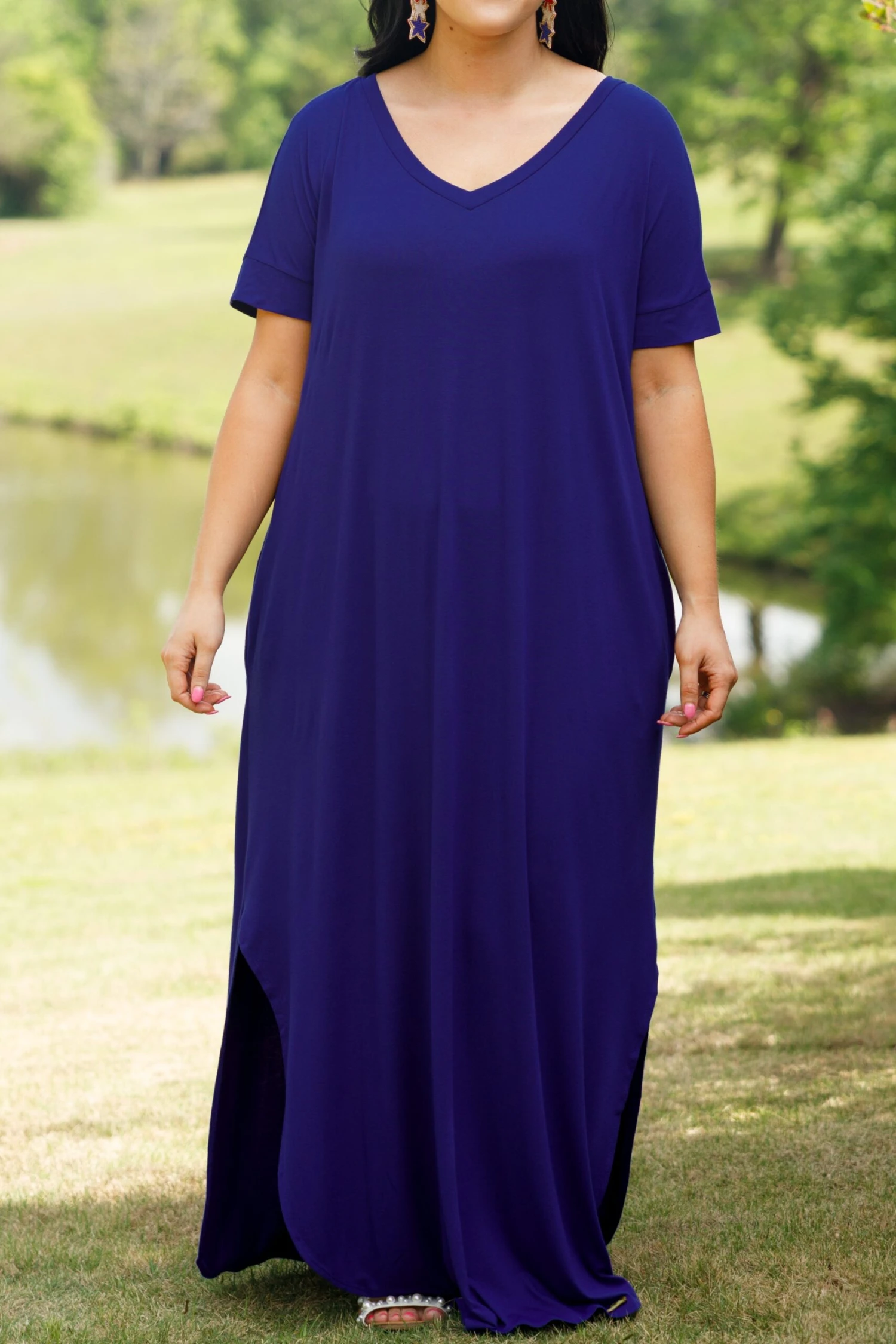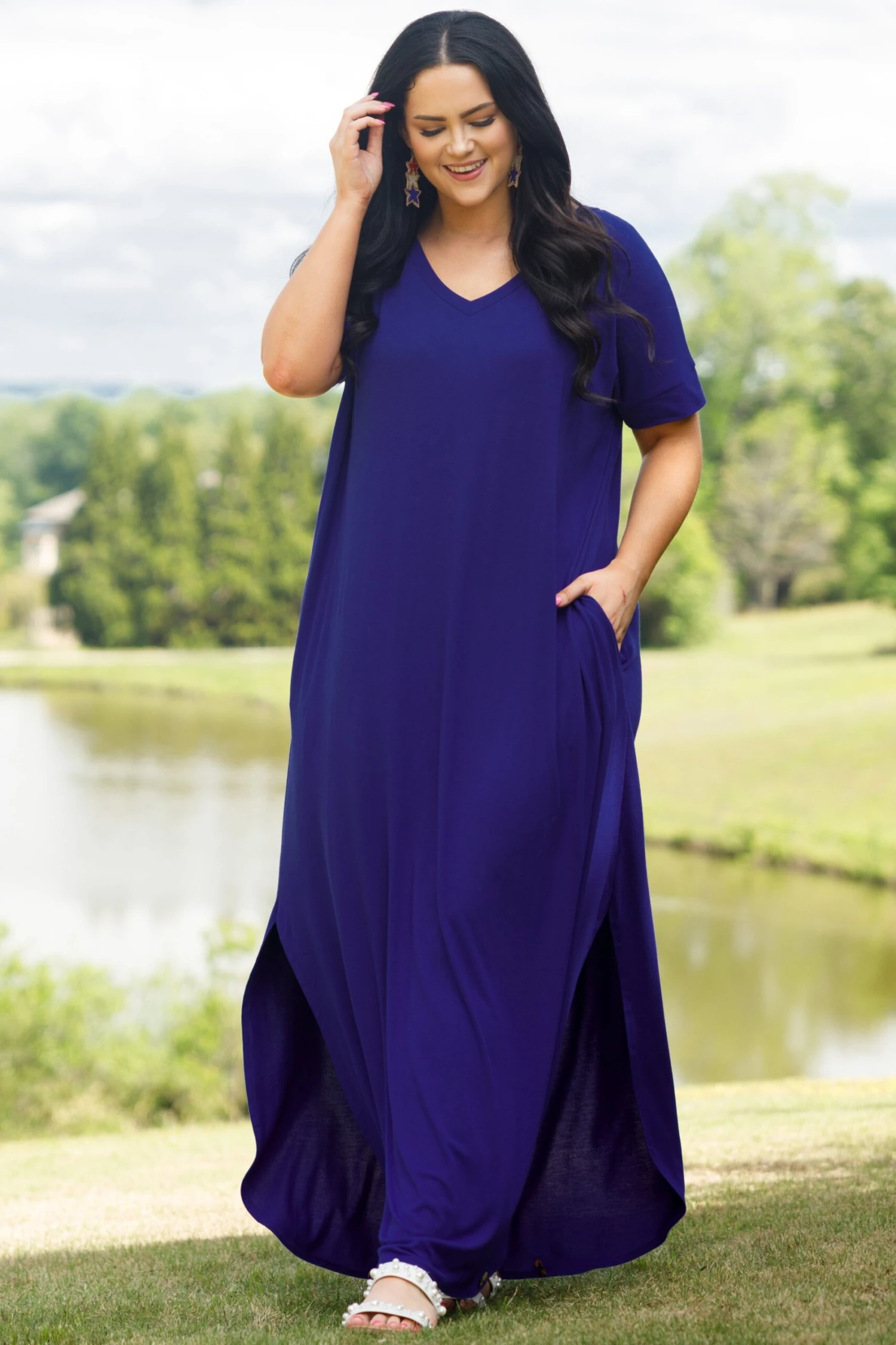 The maxi you’ll be wearing ALL summer long!! The bright blue color is super sweet! It’s ultra comfy and so soft!! The relaxed, flowy fit makes it perfect for hot days and nights!! Pair it with sandals and cute accessories to complete the look!