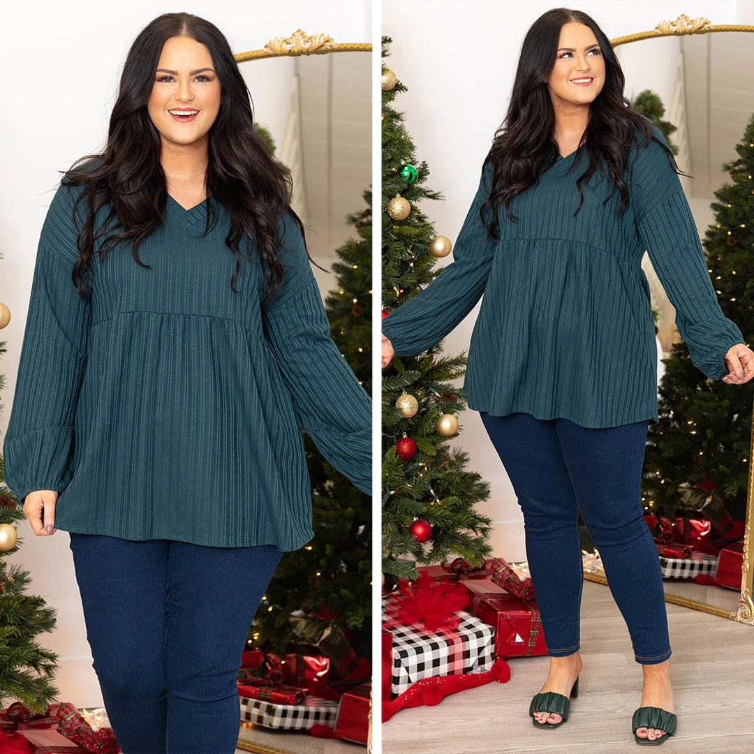 This top is such a vibe! This top has a textured design with a hunter green color and babydoll style that you can dress up or down and style for every occasion! It’s comfortable for all-day wear, has a figure-flattering fit, and features the cutest bubble sleeves for the ultimate trendy look! Style this top with skinnies and heels for an easy everyday outfit!Â