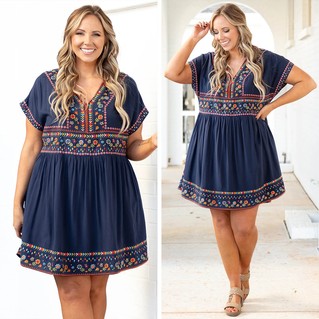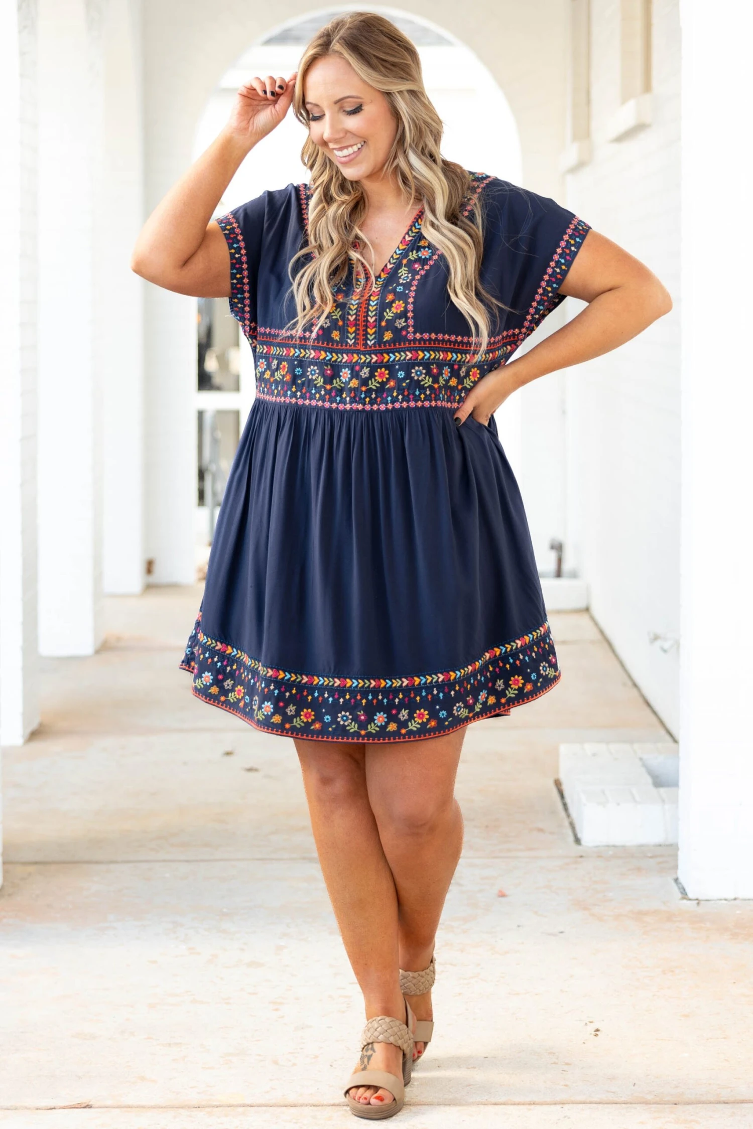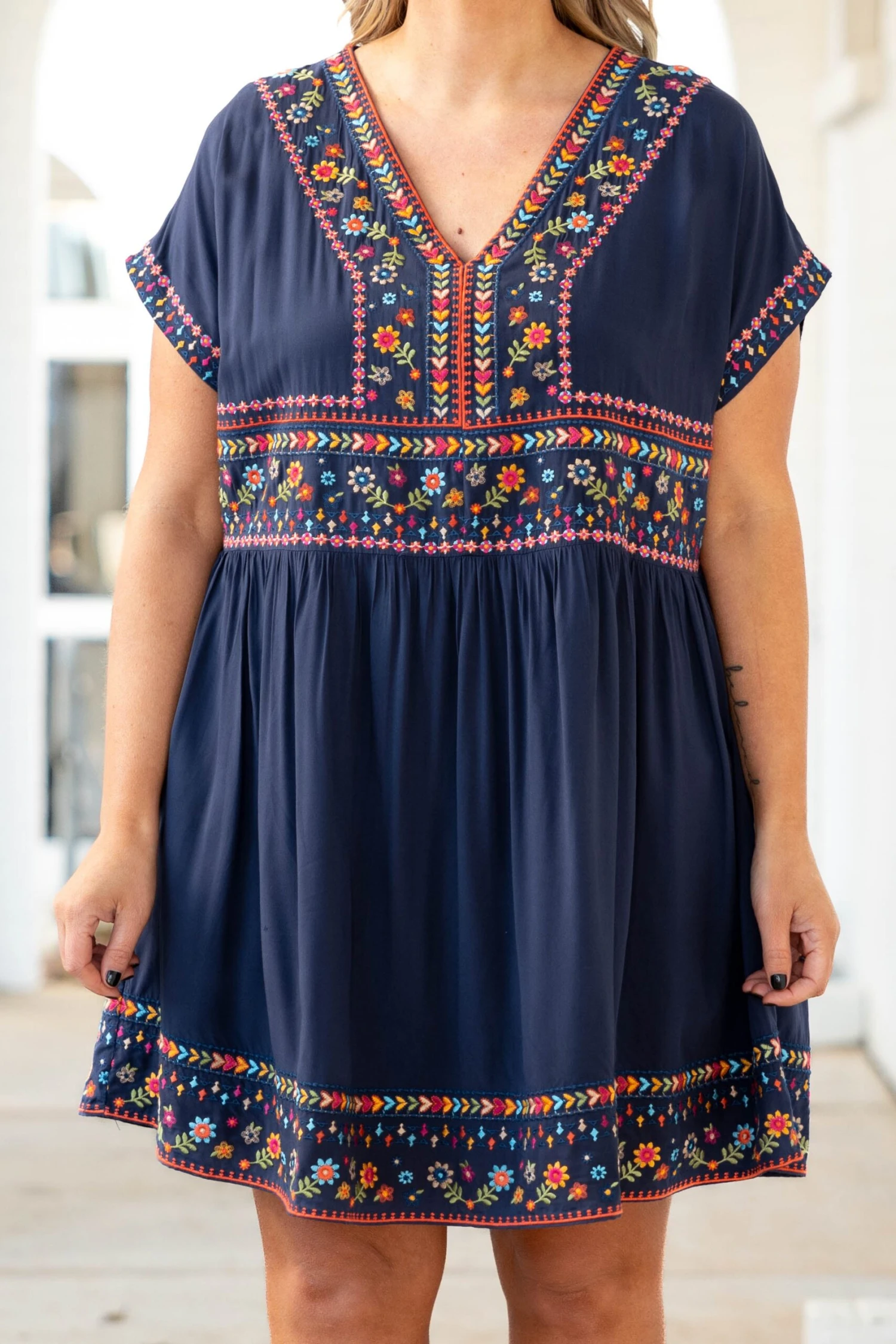 We can’t help but chime in about how much we love this dress! The navy color is classically chic and the embroidered pattern is so stunning! We love the babydoll style that is sure to flatter anyone and this cutie has a liner for ultimate coverage! Style this with heels for a perfect look at your next event!Â
