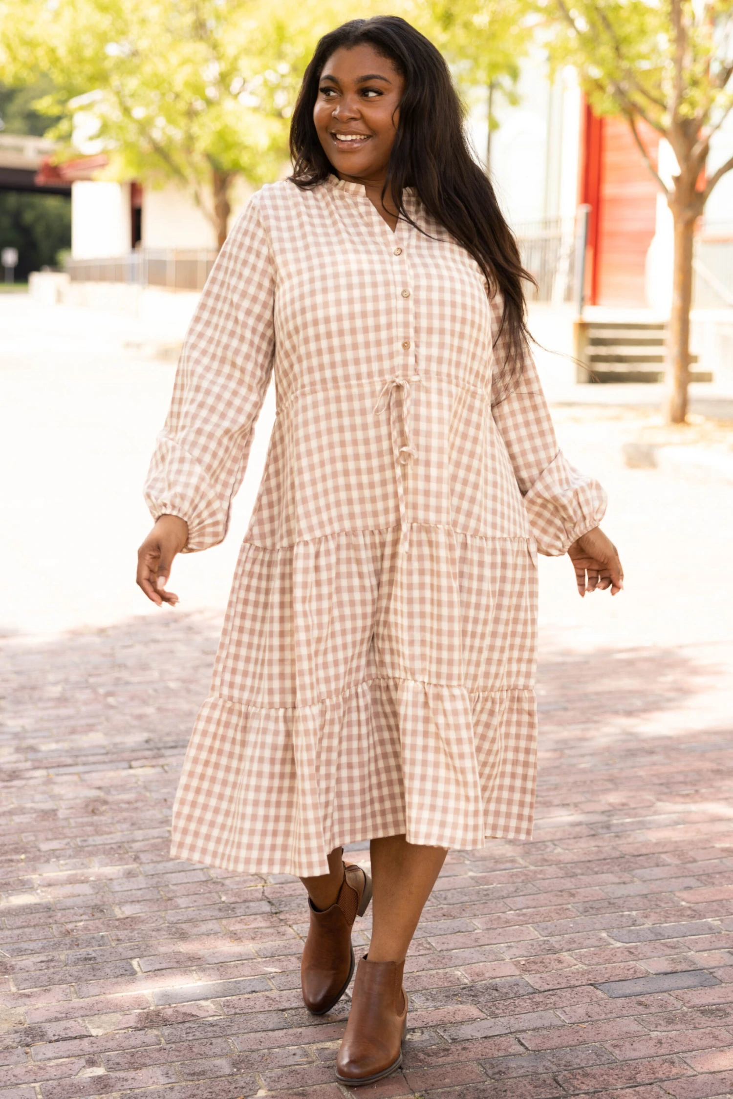 No need to live in the country to rock this dress! This cute gingham dress features a flattering babydoll fit with a functional tie to accentuate your waist. Pair this sweet dress with booties for a chic look!