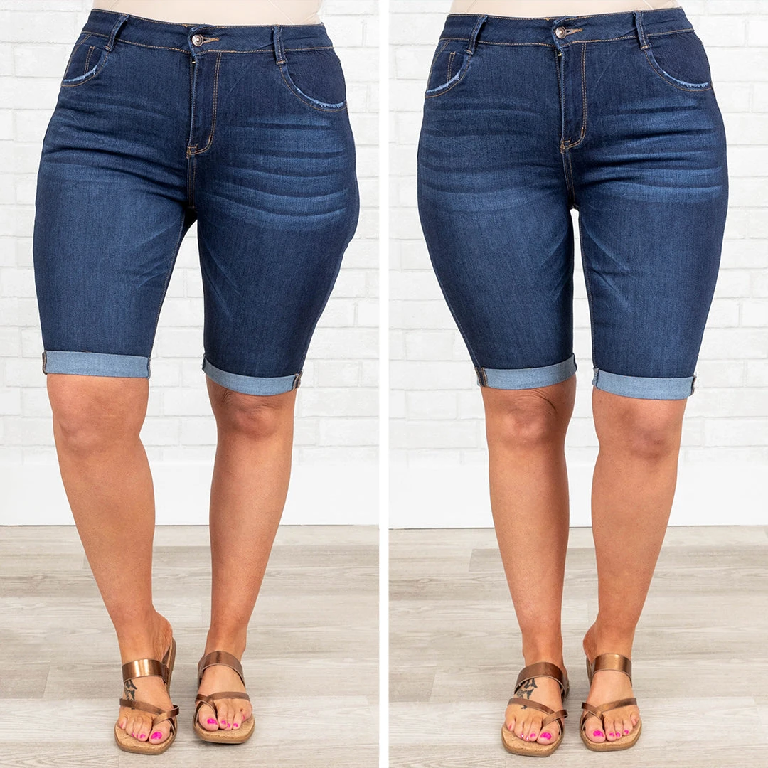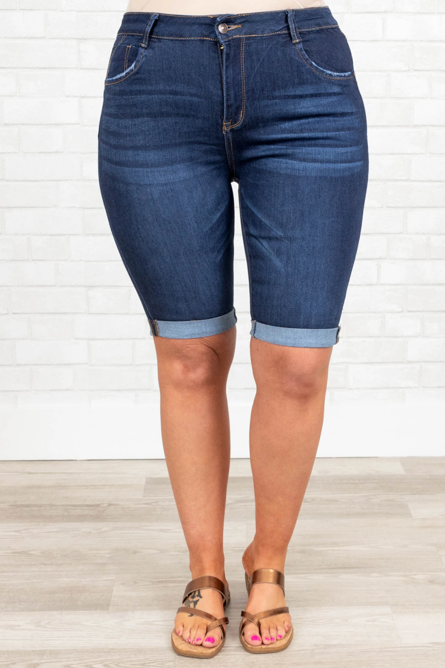 These shorts are calling your name! They navy blue color is so easy to pair with all of your faves! The stretchy, figure flattering fit is just what you need for the season! Throw these cuties on with a cute tee or a sassy top for a classic chic look!
