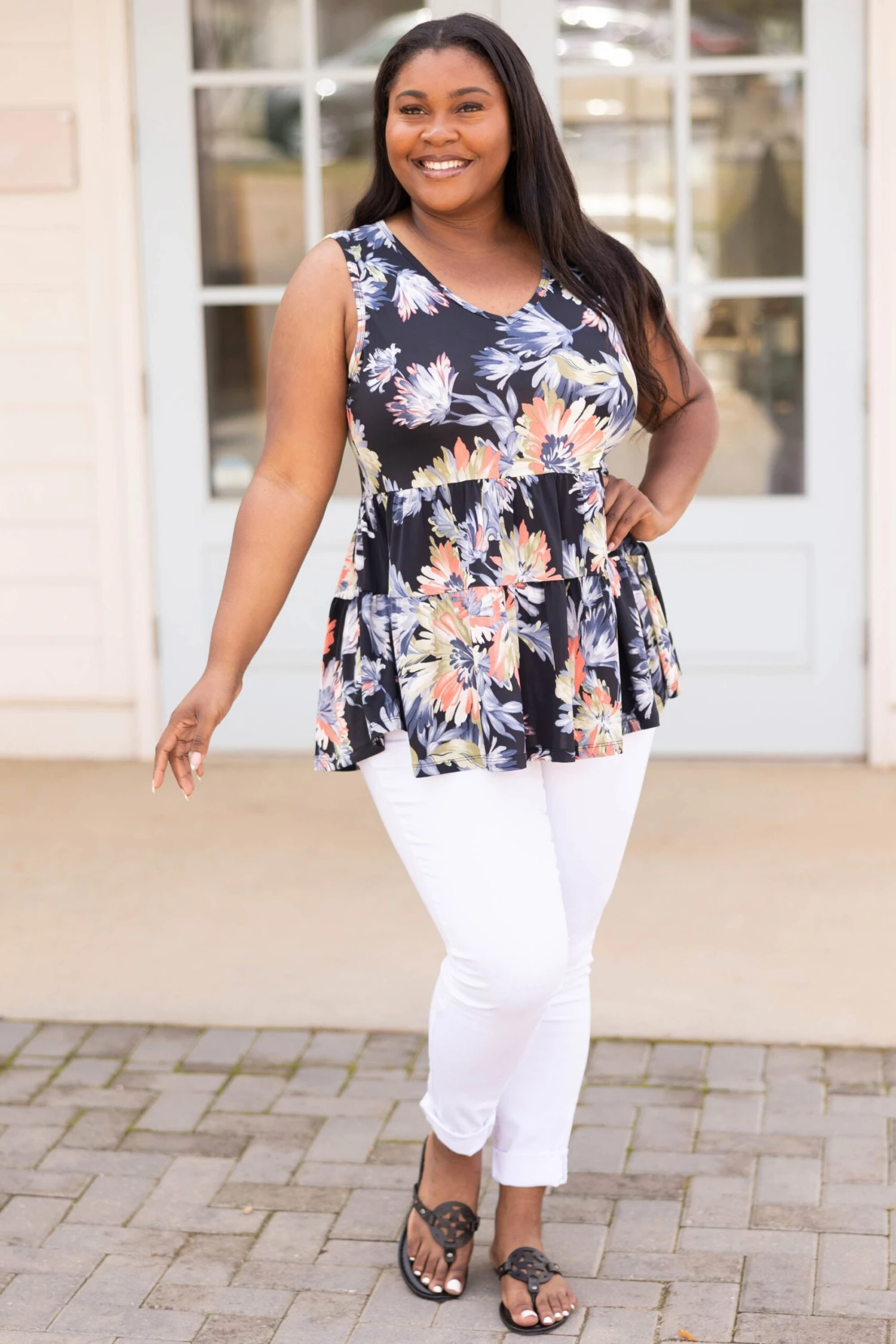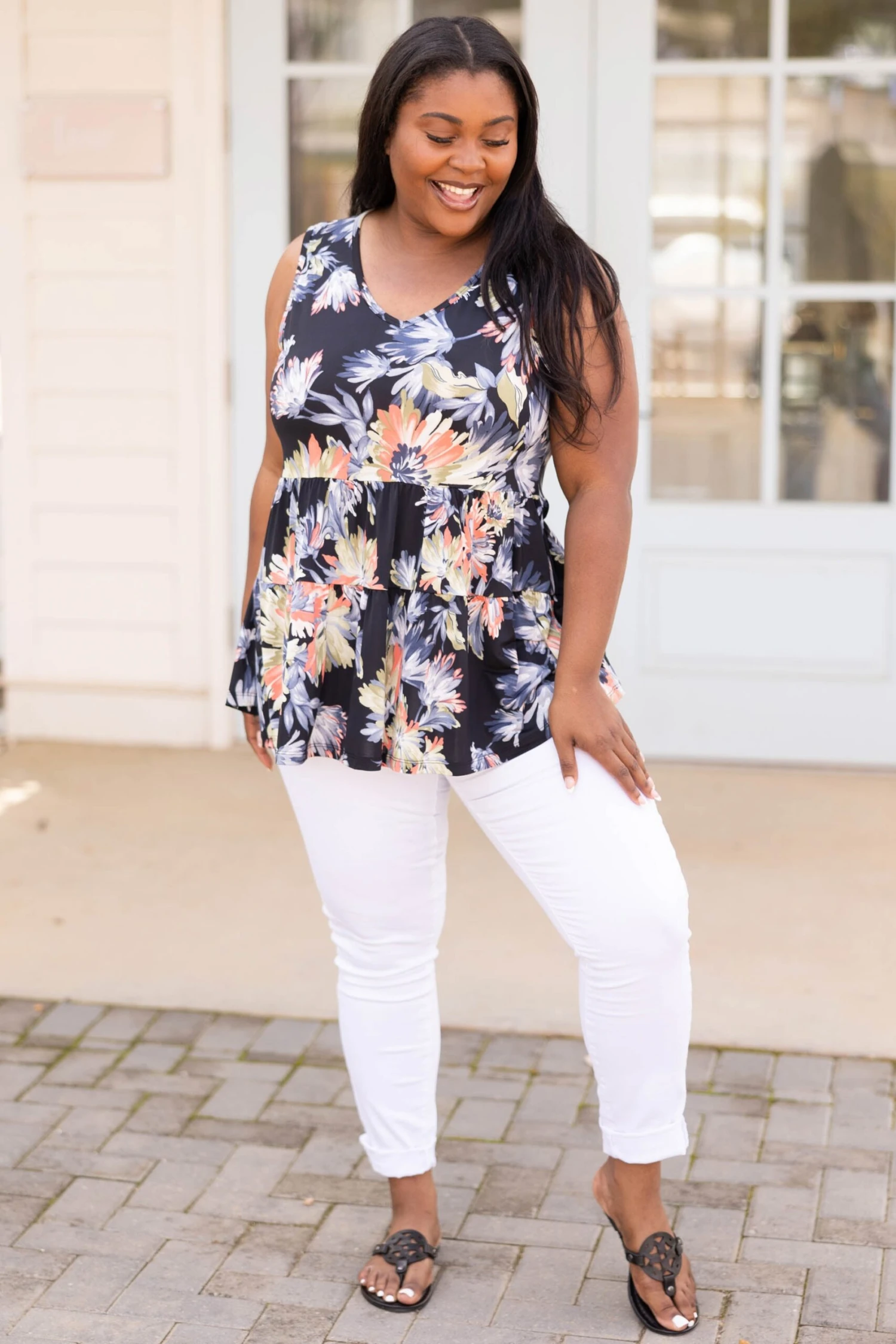 Perfect for after-hours fun, this top is a black floral babydoll top with an ultra-feminine fit! Enjoy a comfortable and breathable fabric that moves with you, and add a touch of style to any look!