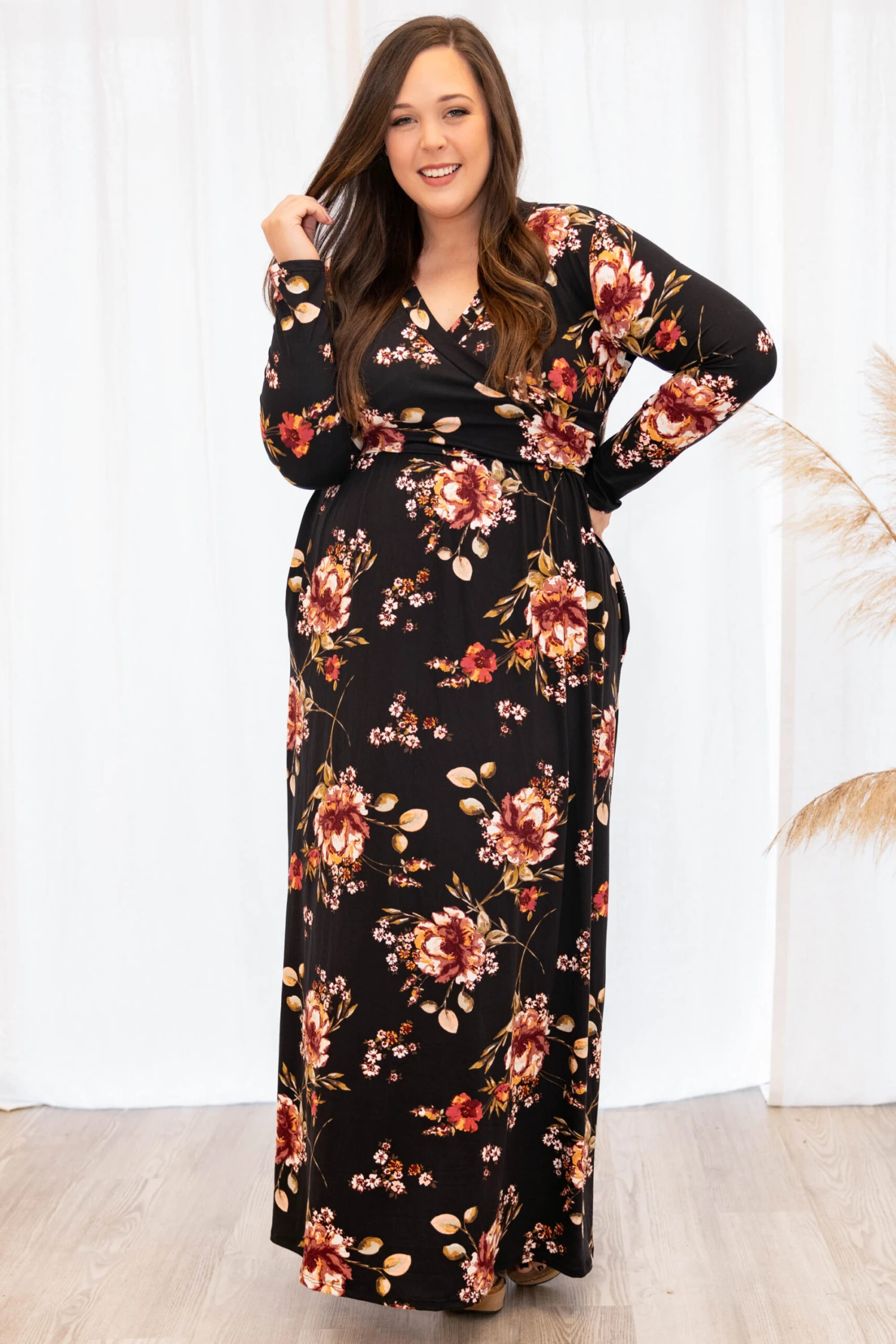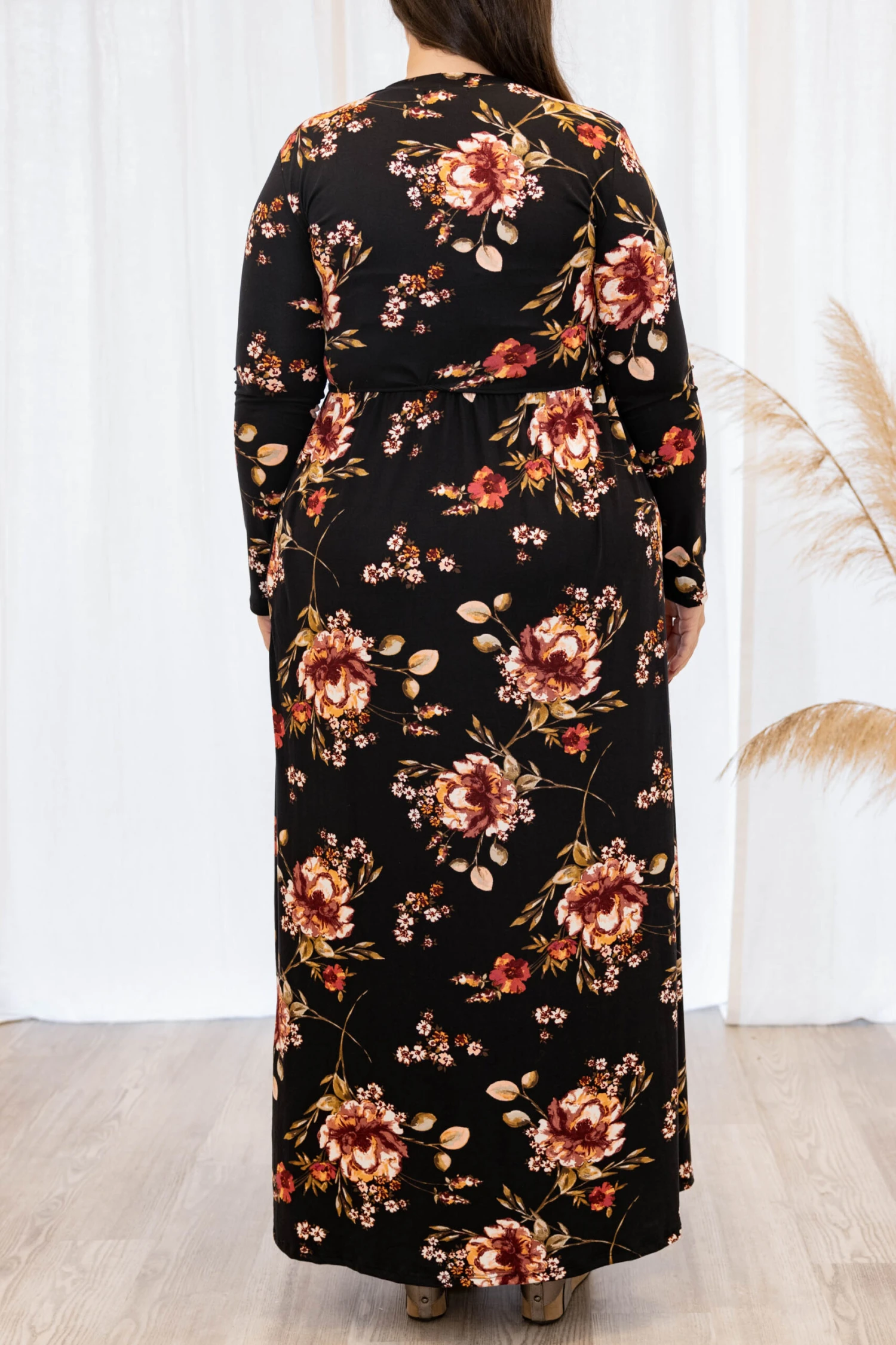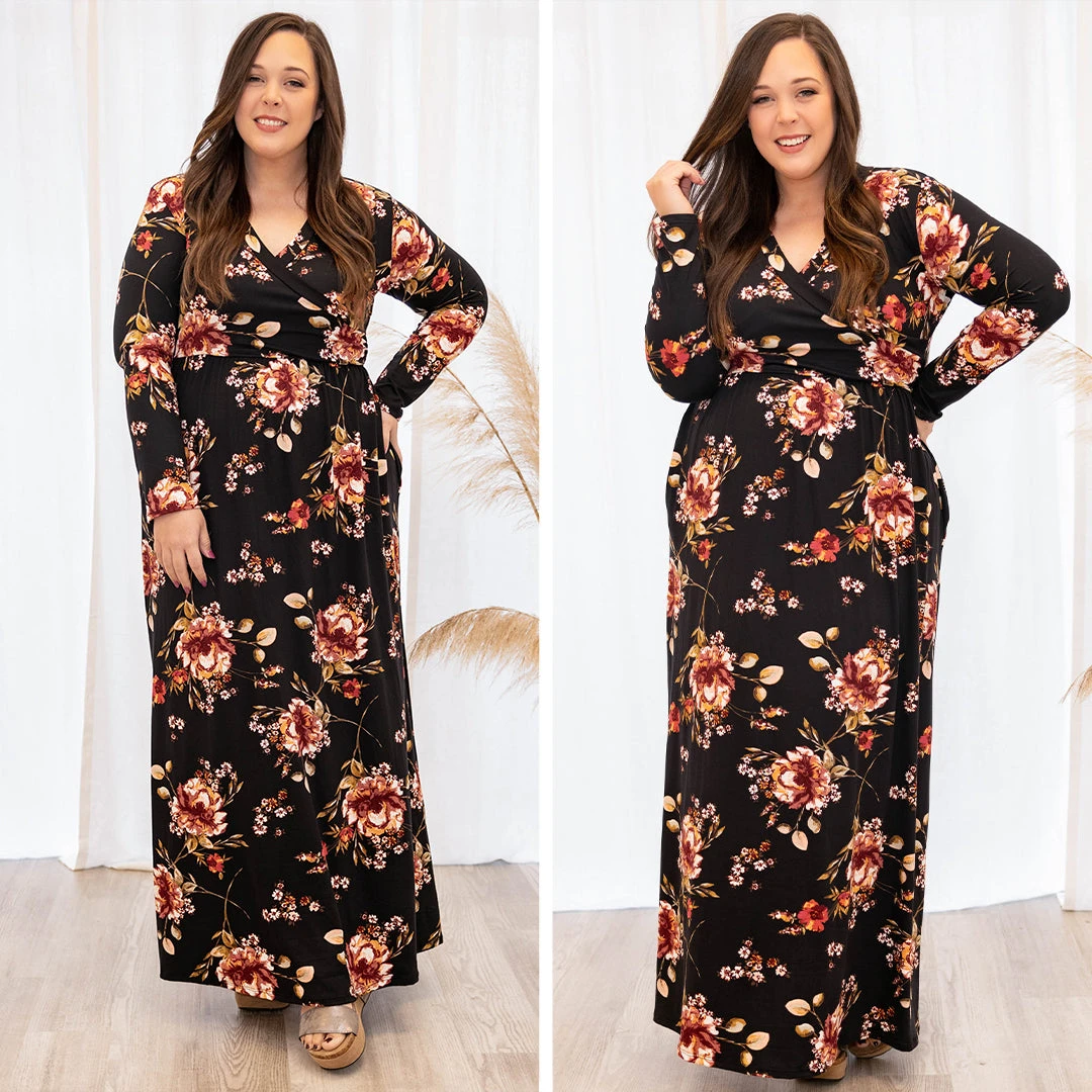 This dress is perfect for the Fall time!! It has a pretty floral pattern with neutral colors you can style for every occasion! It’s comfortable for all-day wear, has a flowy maxi dress fit! Simply, pair this dress with wedges or booties for your next event!Â