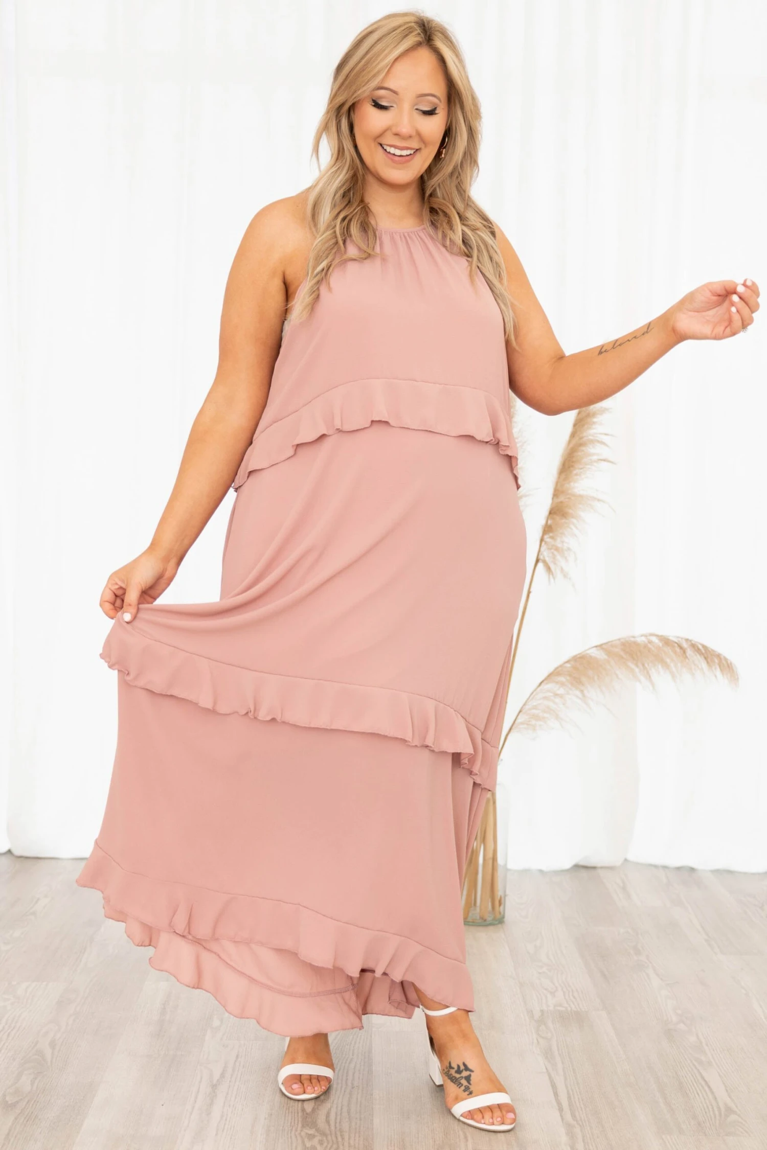 Happy days are here again with this dress! The dusty rose color is so pretty and the ruffle tiers remind us of flower petals! The textured fabric is so unique and the halter look is killer! Style this babe with some white heels and super cute accessories for the perfect look!