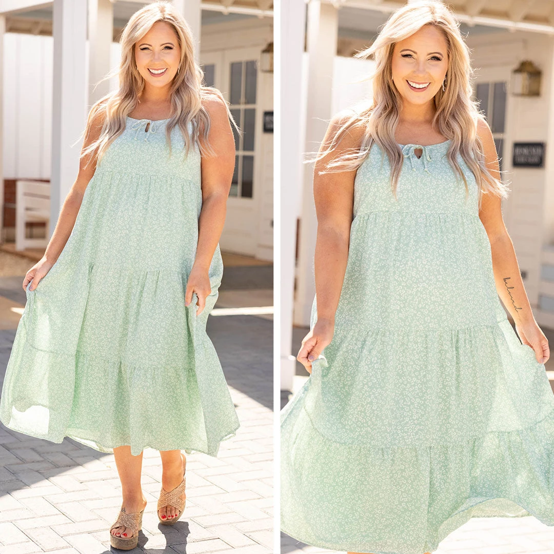 It has a trendy leopard print pattern with shades of sage you can wear all season long! It’s comfortable for all-day wear, has a figure-flattering fit, and features the cutest strappy neckline! Simply, pair this dress with wedges or sandals for an effortlessly chic look!