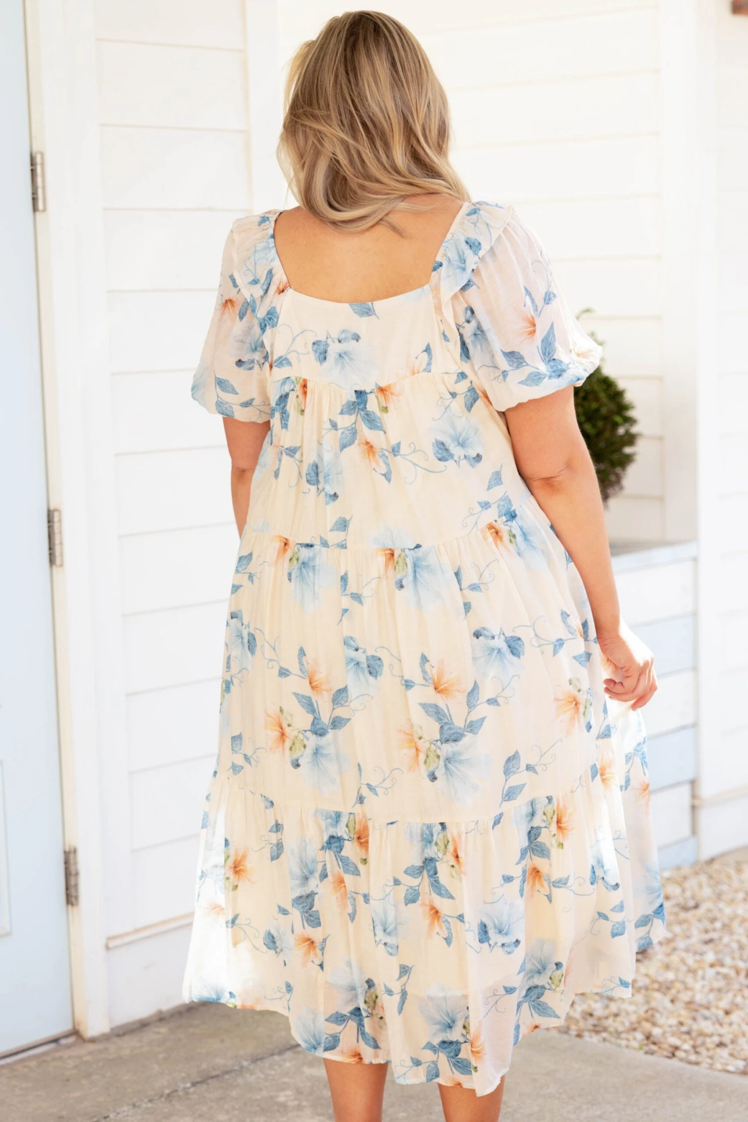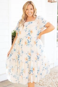 We are planning our island escape with this dress! This cutie has an ivory color with a gorgeous blue floral pattern! The material has a lightweight linen feel and the tiered style is always trendy! Style this with some wedges and a fun purse for a super stylish look!