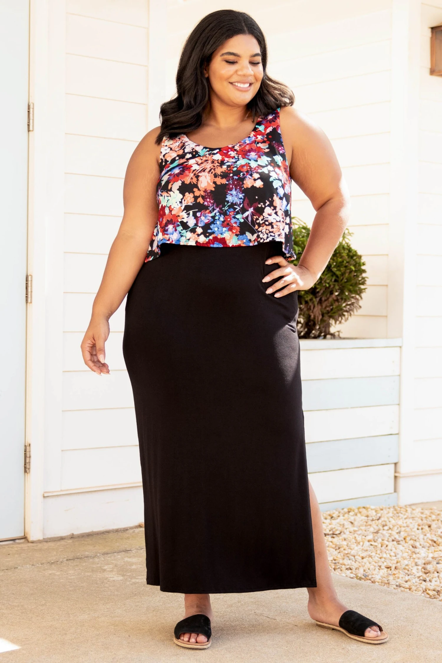 Feel like an absolute star in this dress! The black colors make the floral bodice pop and the maxi length is so trendy! We love the comfy material that is perfect for all day wear! Pair this with sandals and fun accessories for the perfect look!