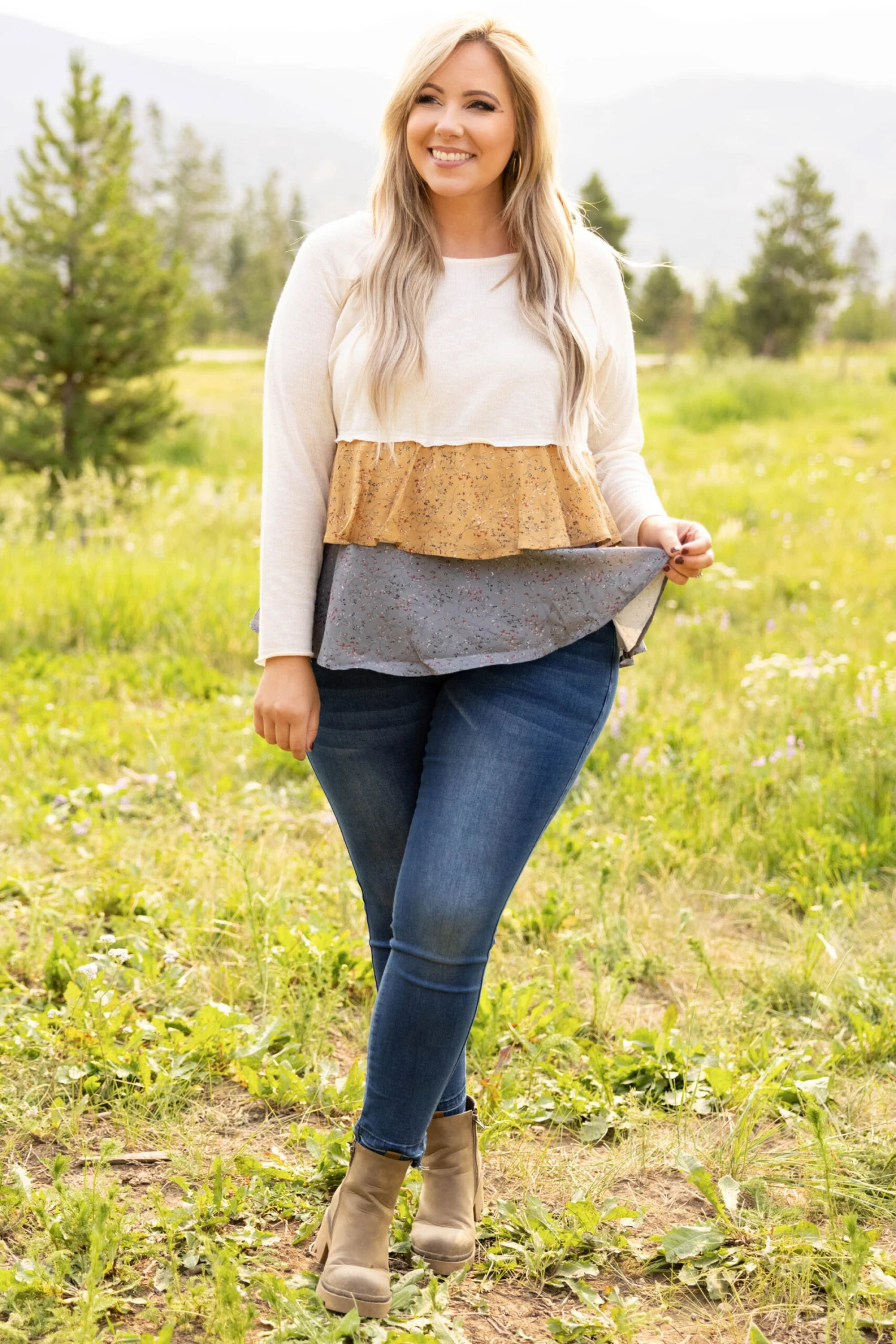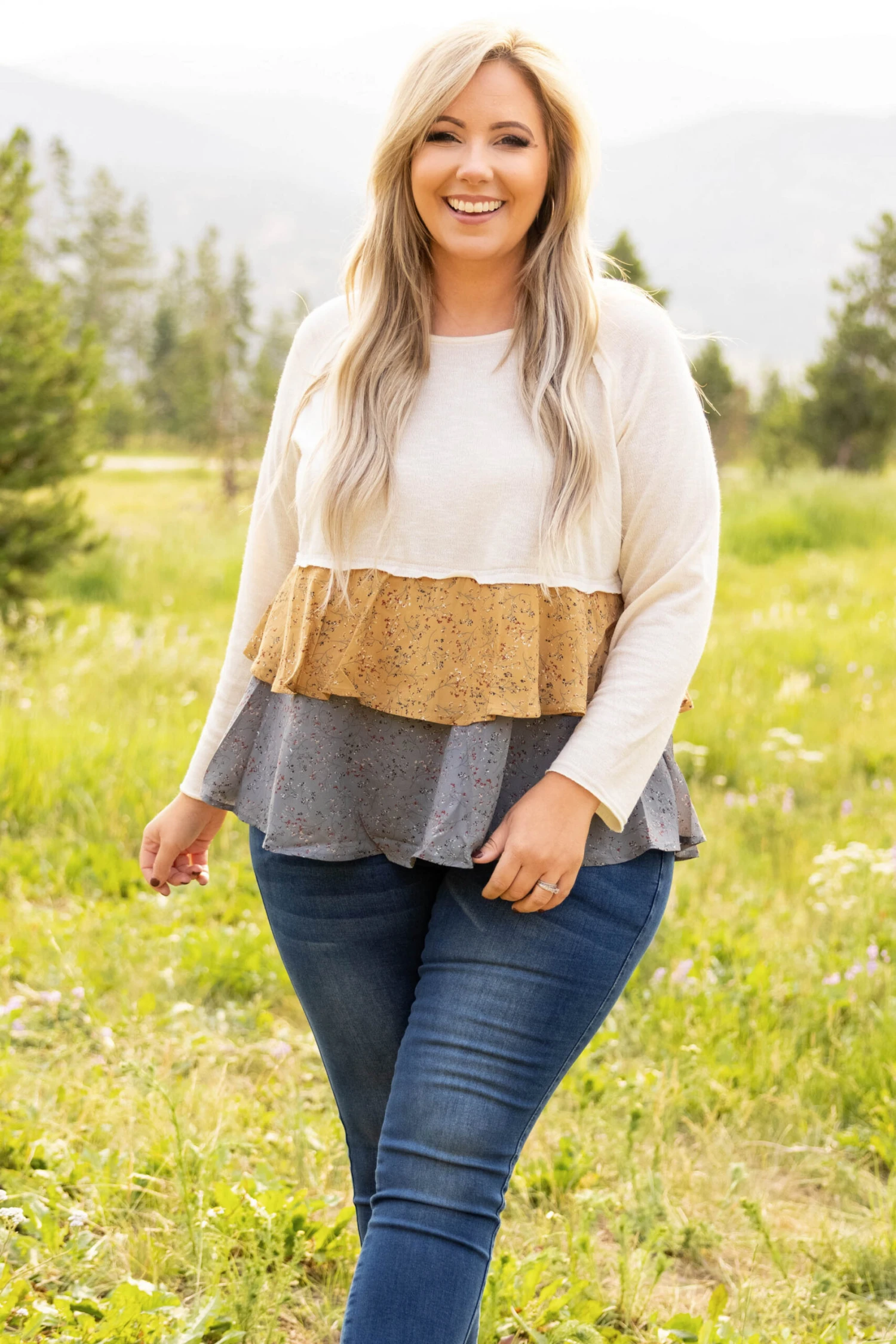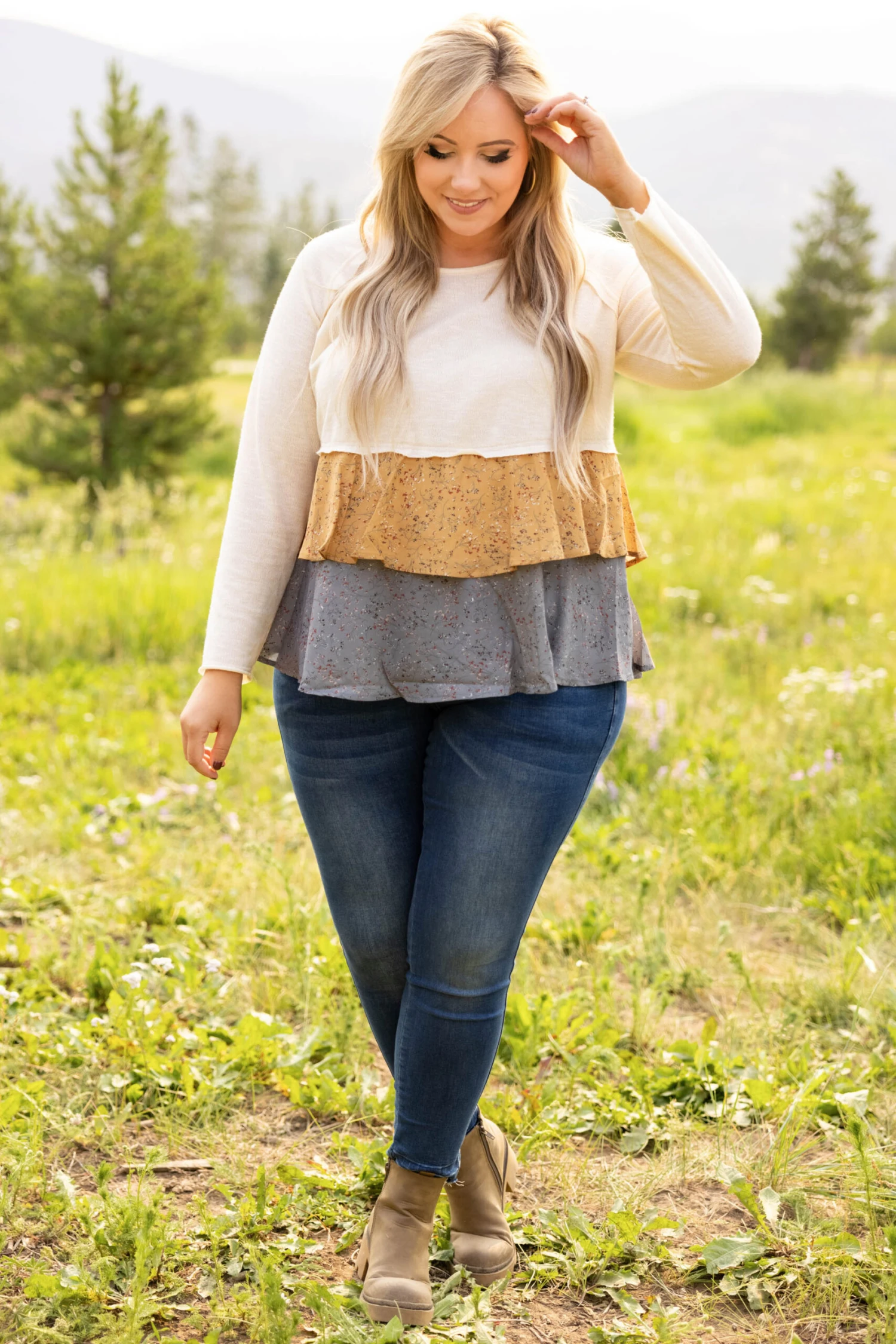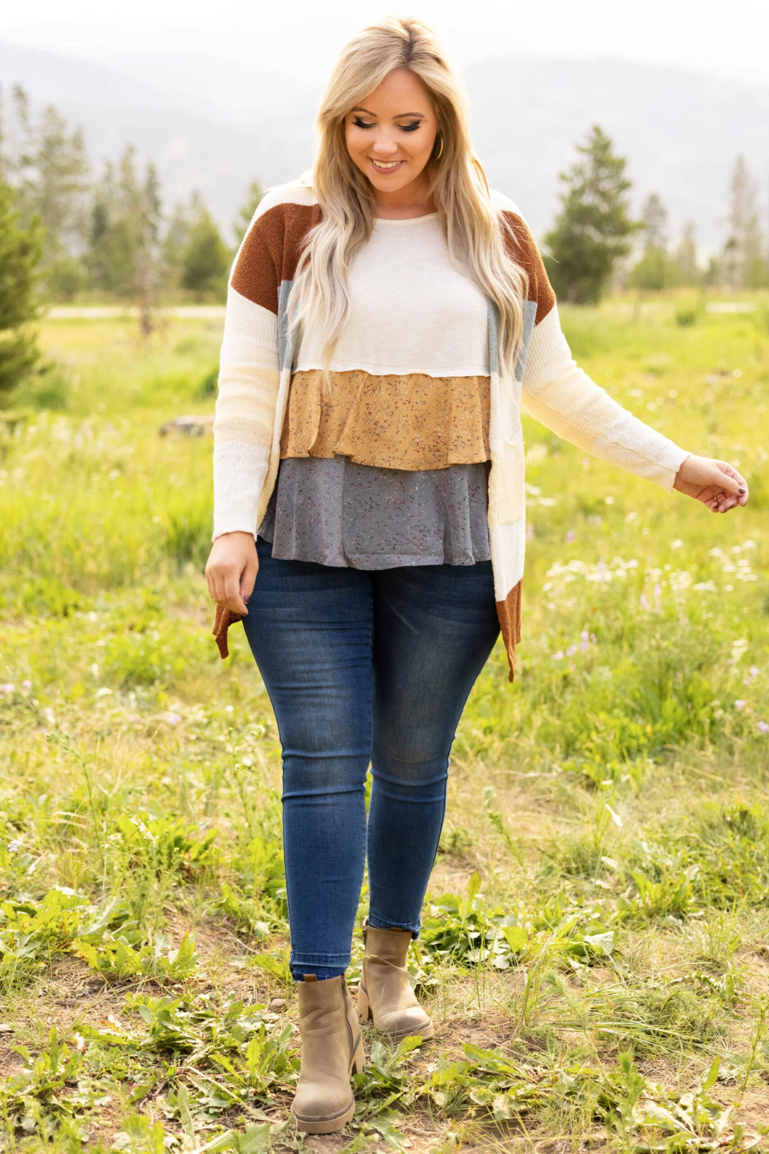 This top is perfect for the changing seasons! It has a chic color block pattern with gorgeous colors that are perfect for the season! It’s comfortable for all-day wear, has a relaxed fit, and features a soft fabric we adore! Style this top with skinnies and boots for an easy everyday outfit!
