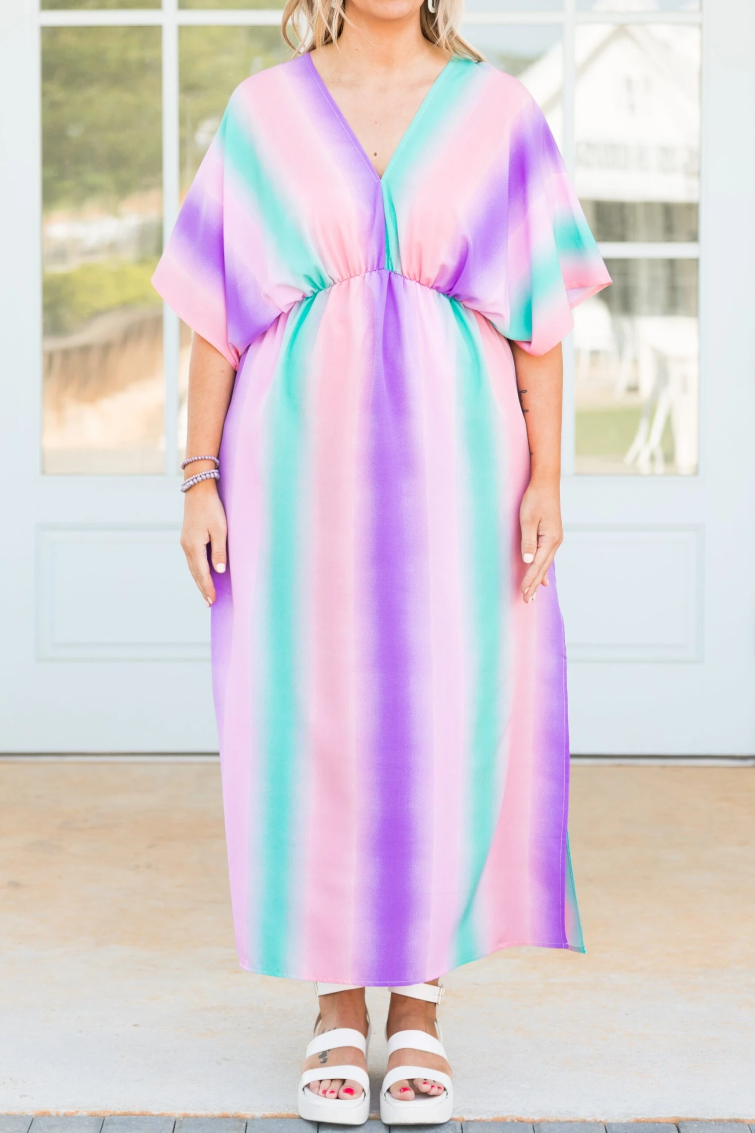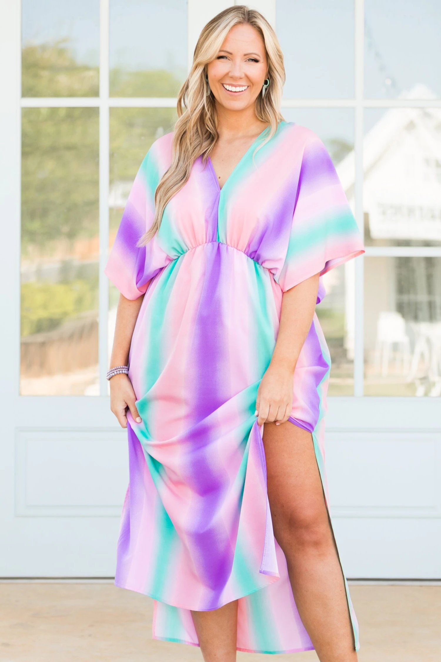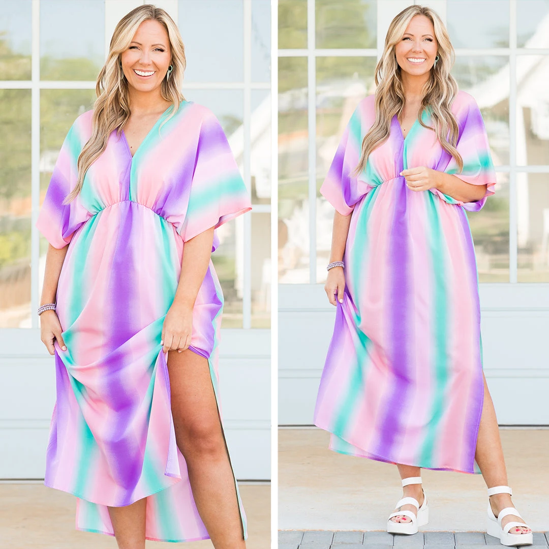 This dress is an ideal addition to your summer wardrobe! The unique watercolor design is perfect for any beach-side gathering! The lightweight, flowy fit provides a comfortable and flattering fit for any swimsuit coverup!Â