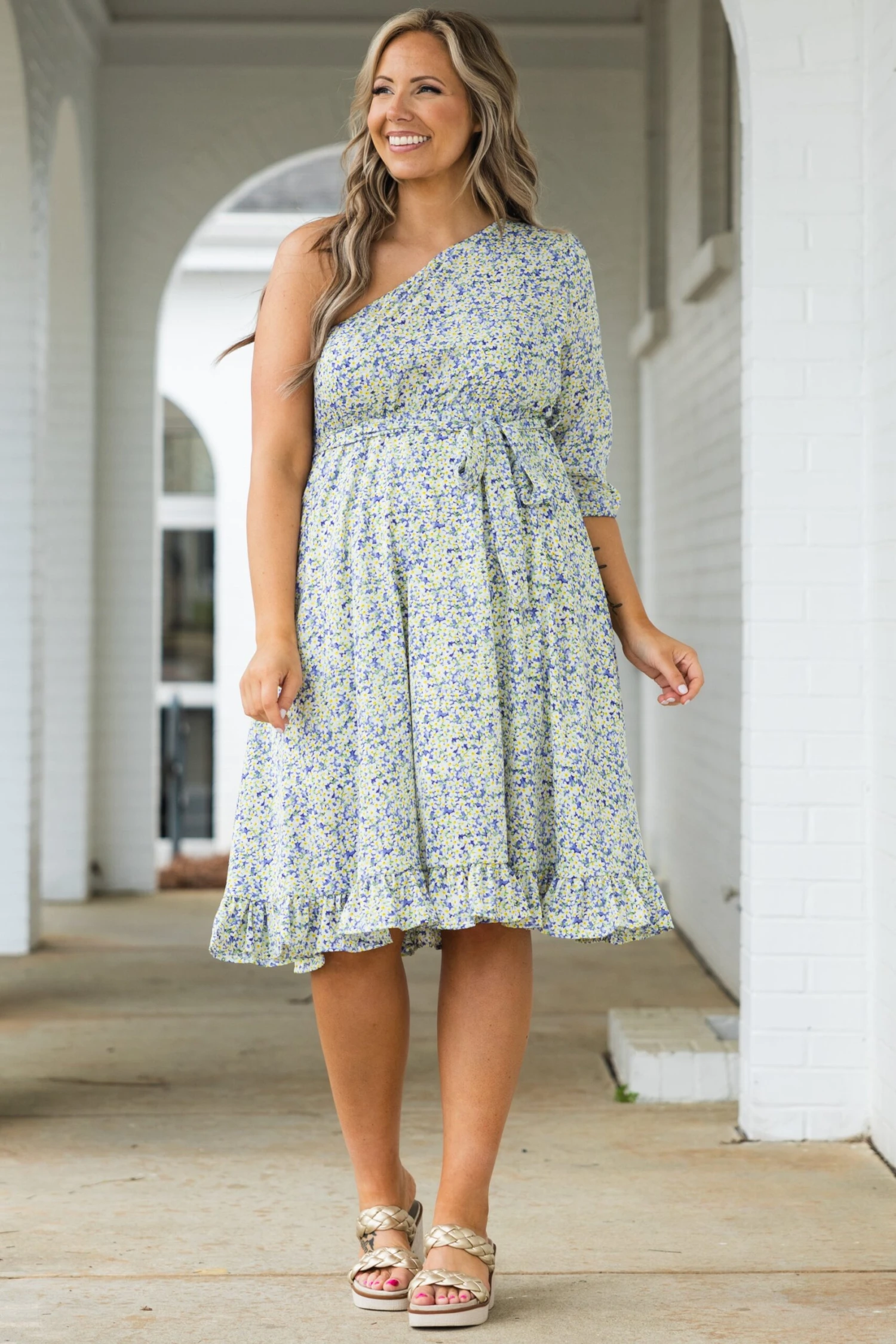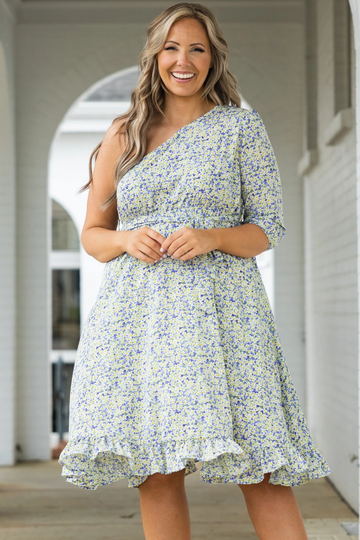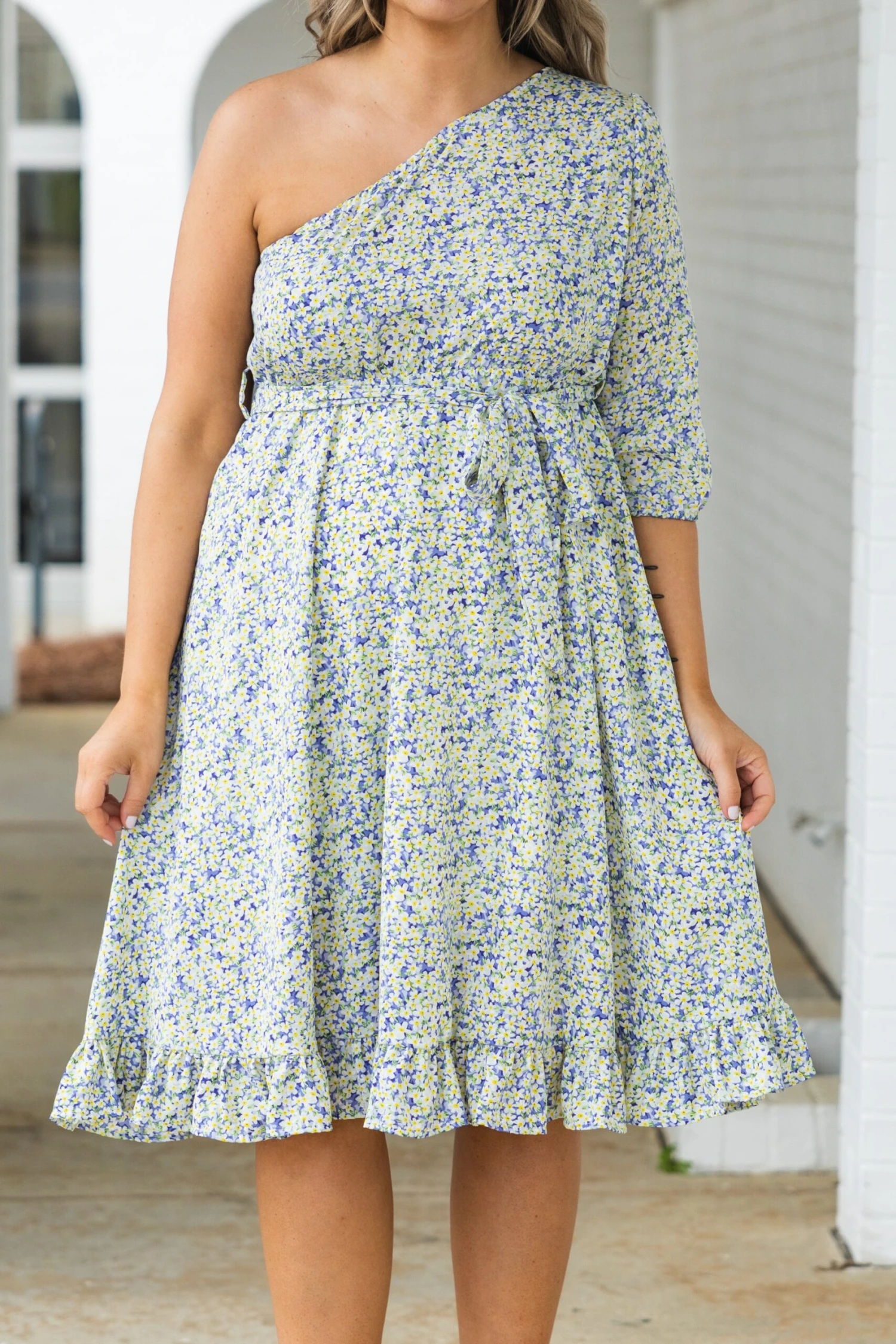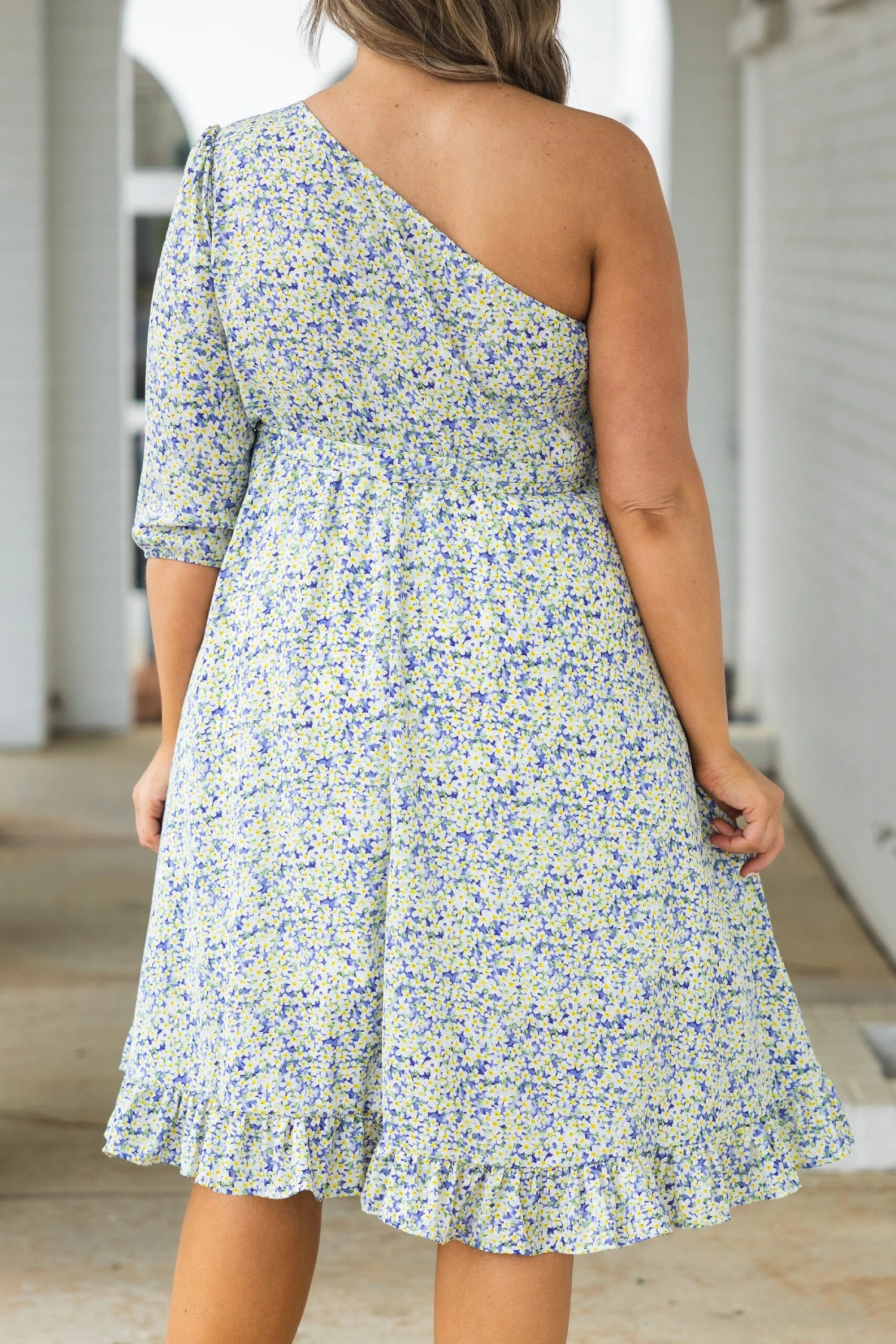This beautiful dress is sure to be the perfect addition to your wardrobe! Crafted in a one shoulder silhouette with a bold floral print, this dress features a ruffled hemline in a timeless blue hue! Style this dress with your favorite accessories and heels for a timeless chic look!