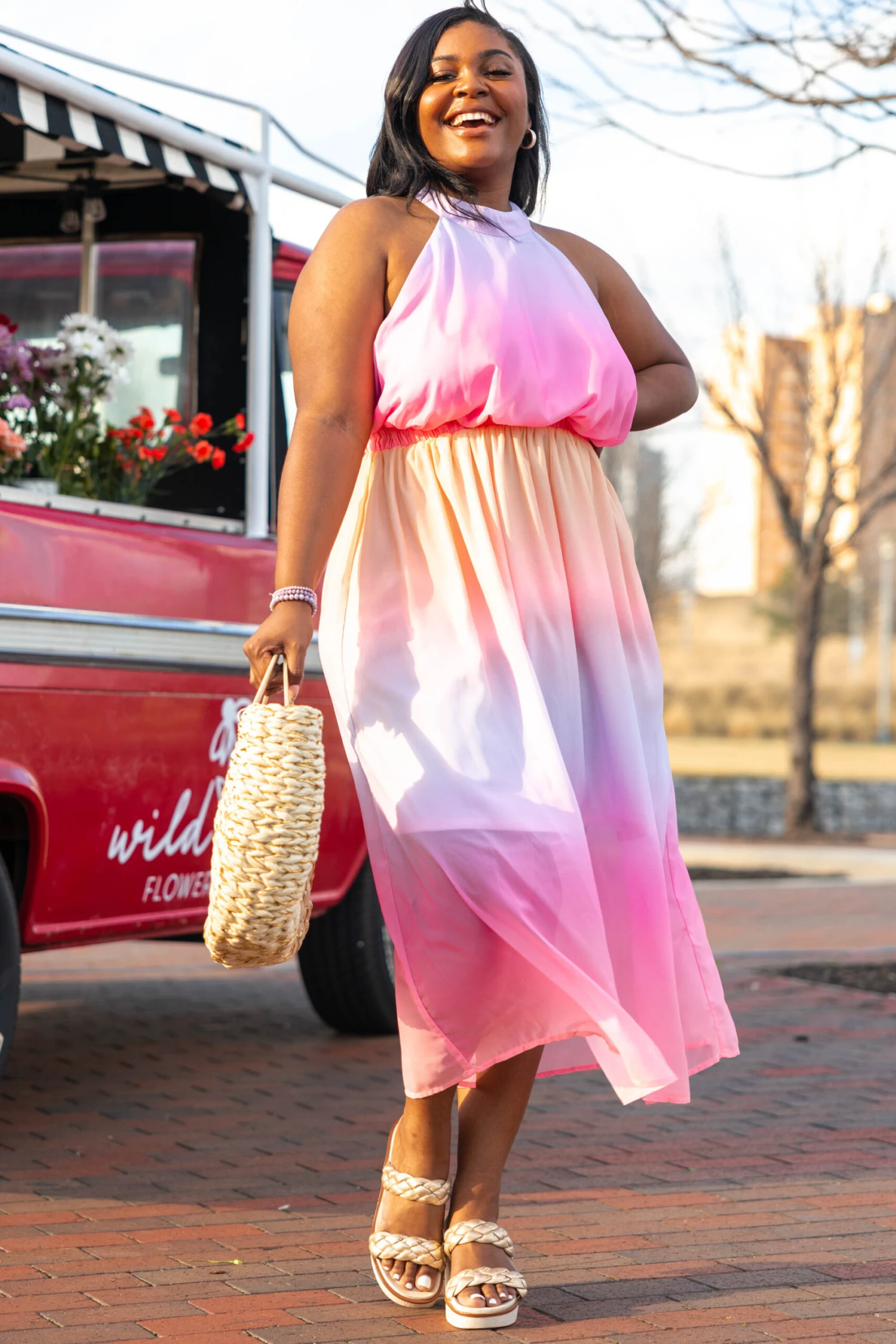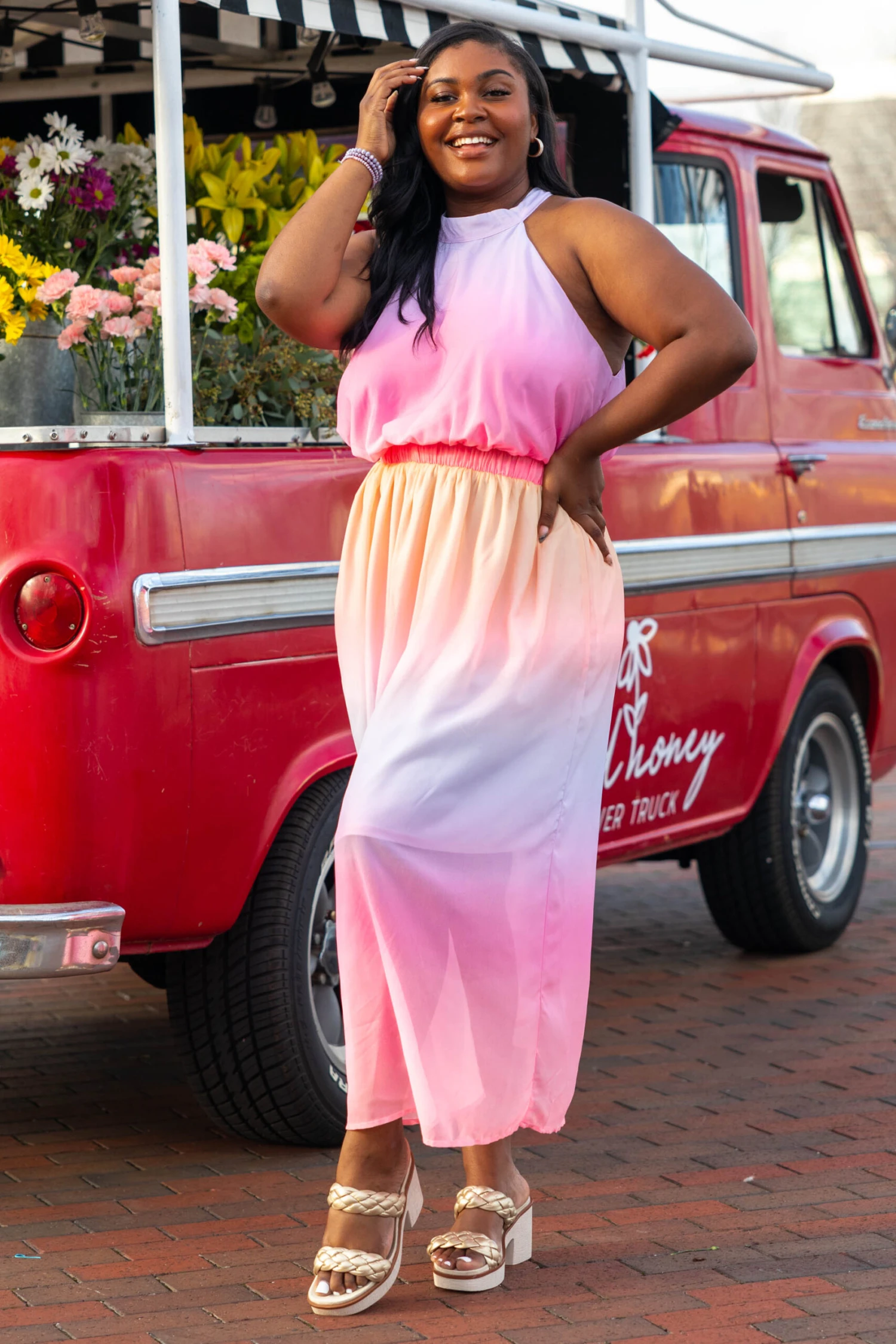 Let your beauty radiate in this beautiful dress! This dress has a bold color combo that is just in time for the season! The halter style and maxi length is perfect for any occasion! Pair this dress with some cute accessories and heels for a whimsical chic look!