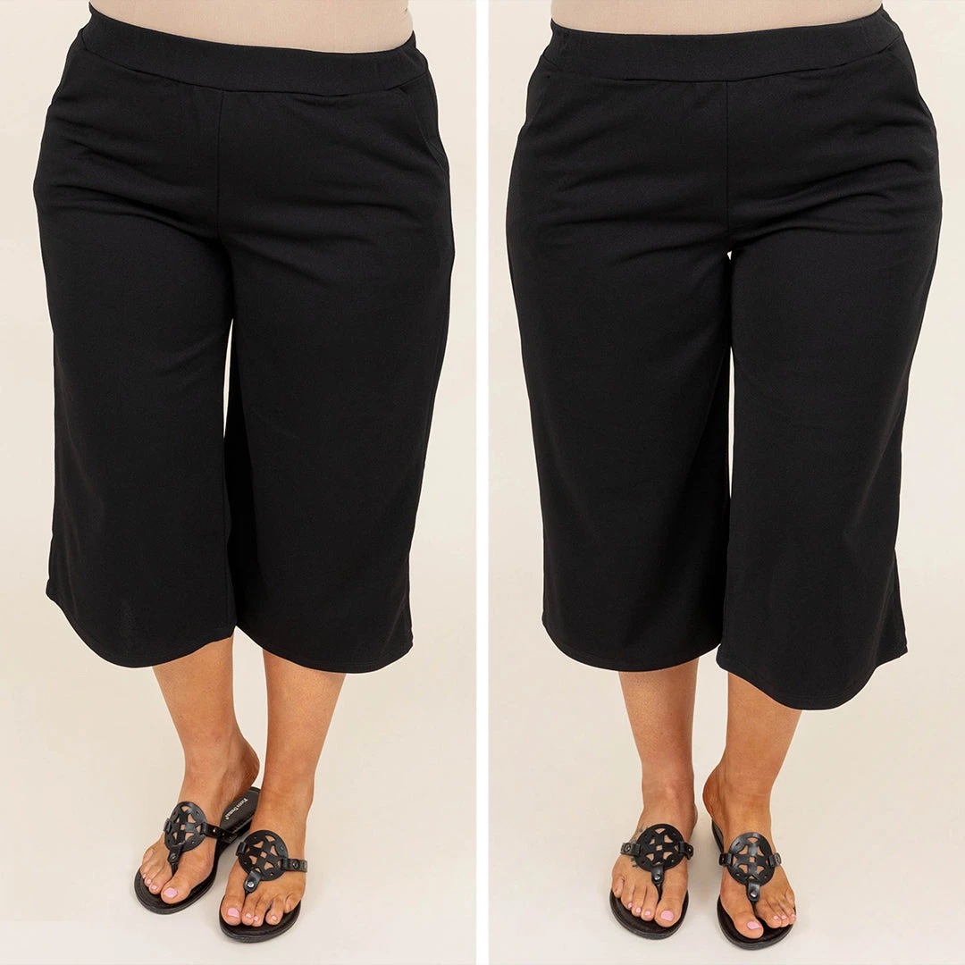 Black pants that are super stylish and flattering? Say less! These babes have an elastic waist and a loose flowy style for ultimate comfort! They are perfect for a day in the office or a day on the town! We love the gaucho capri look that looks so good when paired with a stylish top and some sandals!