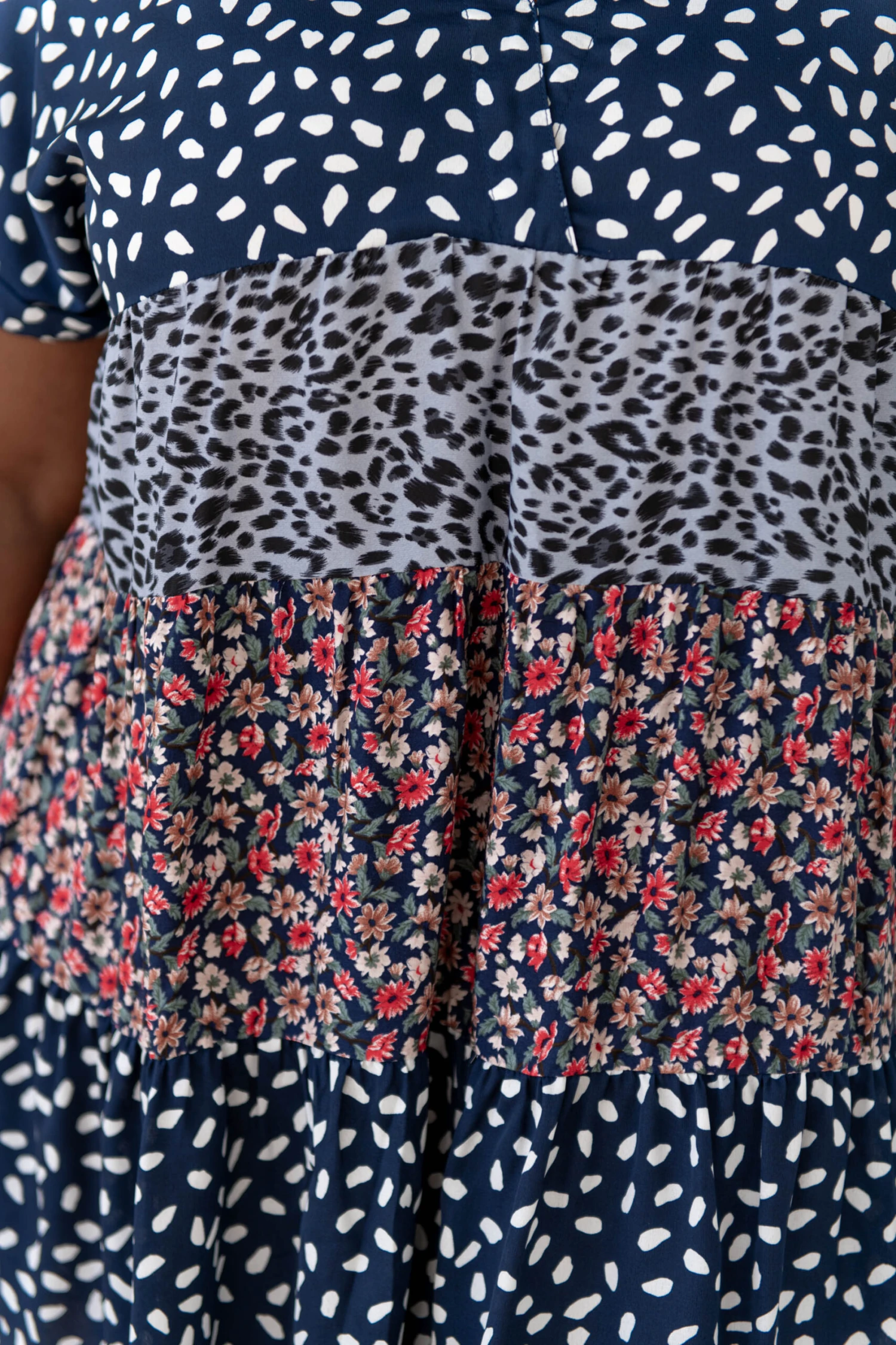 This dress is so simple yet stunning! We promise you’ll look amazing! It has a pretty floral pattern with colors you can dress up or down for every occasion! It’s comfortable for all-day wear, has a figure-flattering fit, and features the cutest babydoll! Simply, style this dress with flats or booties for your next event!Â
