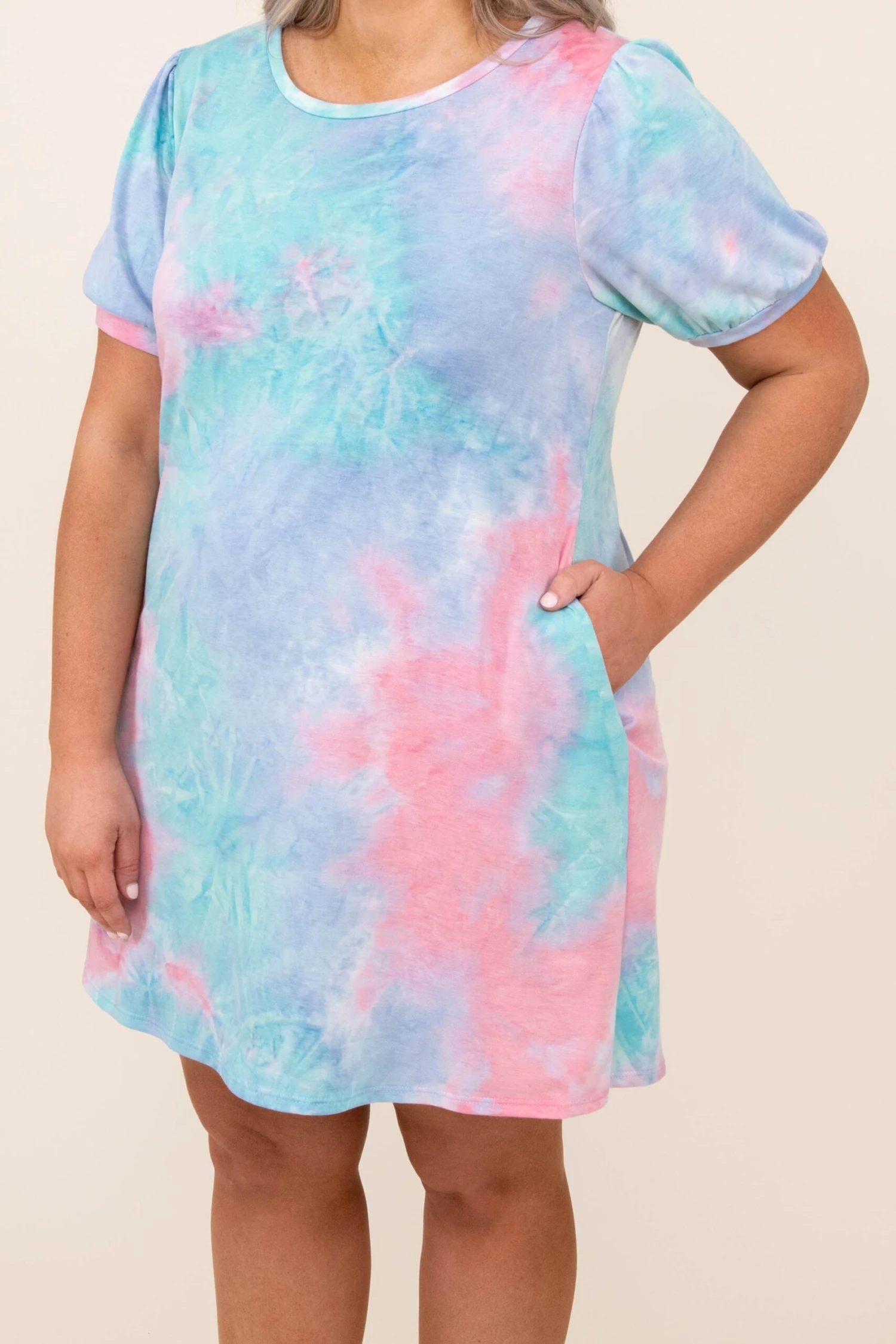 This dress was made for every social event on your calendar! This dress has a trendy tie dye pattern with colors that are perfect for the season! It’s comfortable for all day wear, has a figure-flattering fit, and features the cutest sleeves! Style this dress with booties and your favorite outerwear for your next night out!Â