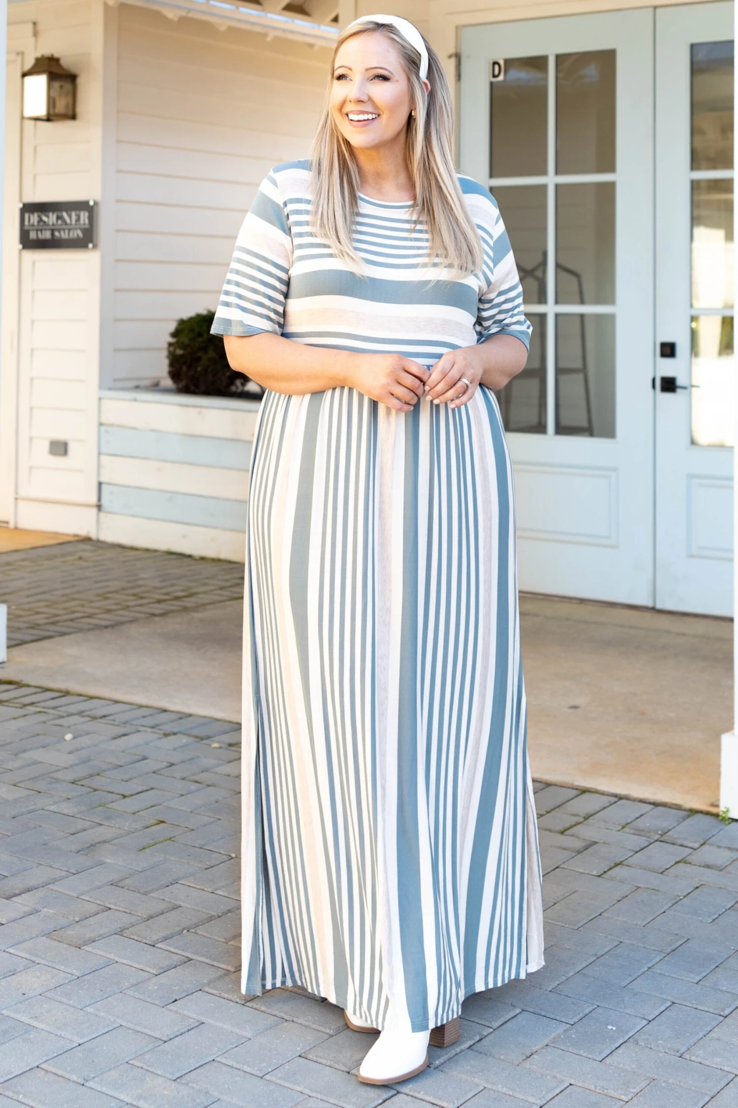 These stripes are right on cue! This sleek maxi is our new favorite! It has a soft, stretchy fabric and a super flattering fit. The best part is you can wear it casual during the week or dress it up for a weekend occasion! Just add chic earrings and espadrilles to complete the look!