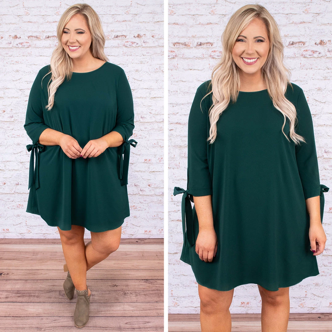 You’ll be ready to take on the night in this chic dress! Its solid spruce color is perfect for any occasion, and we can’t get enough of the tied-sleeves! This dress makes a statement while being subtly beautiful. Add some flair with a bold necklace and boots or keep it classy with heels. This dress is going to be a staple in your closet!Â