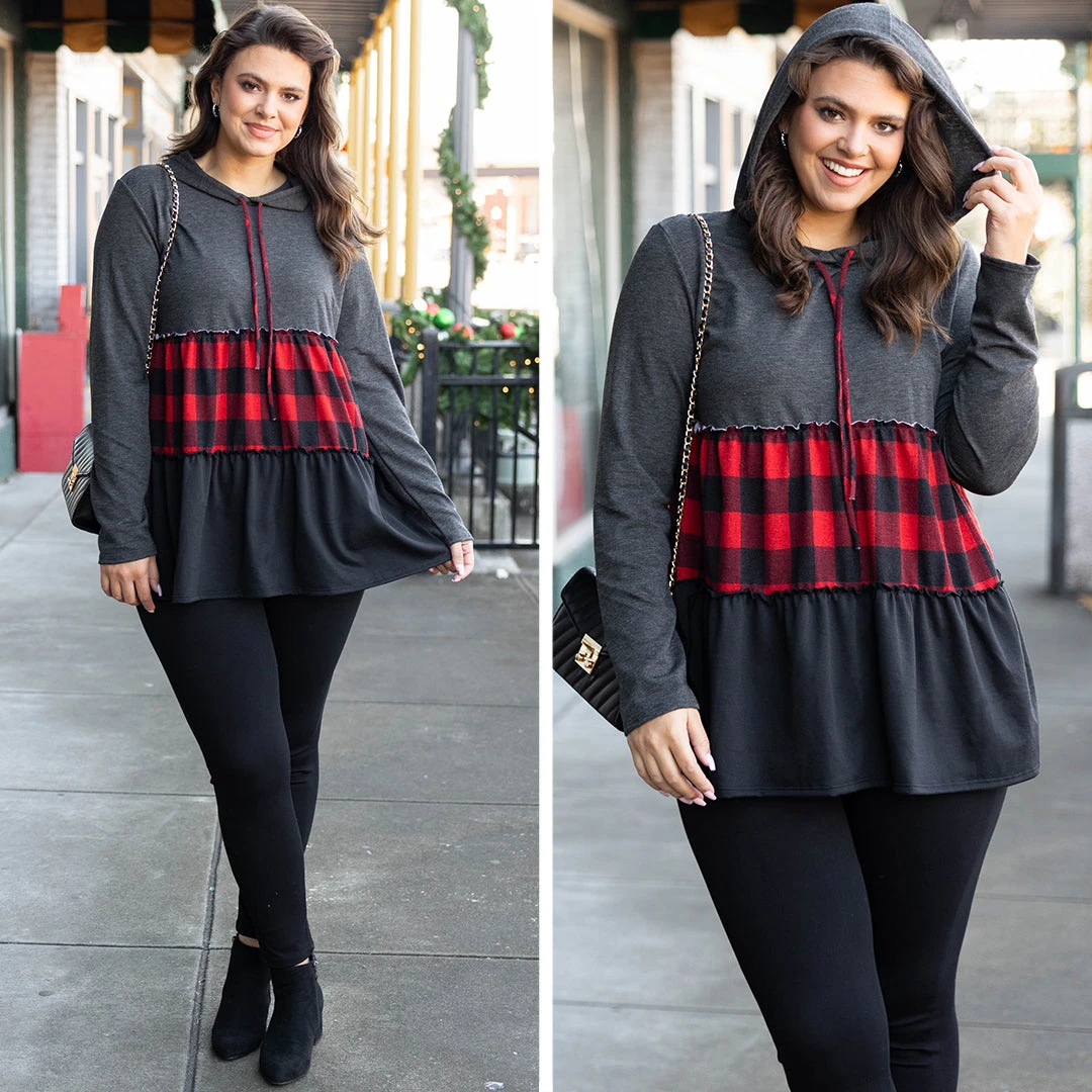 This hoodie is oh so sweet! It has the cutest plaid pattern with neutral colors you can style for every occasion! It’s comfortable for all day wear, has a figure-flattering baby doll fit, and can even be worn with your favorite shoes and accessories! Simply style this hoodie with skinnies or leggings for an effortlessly chic outfit!